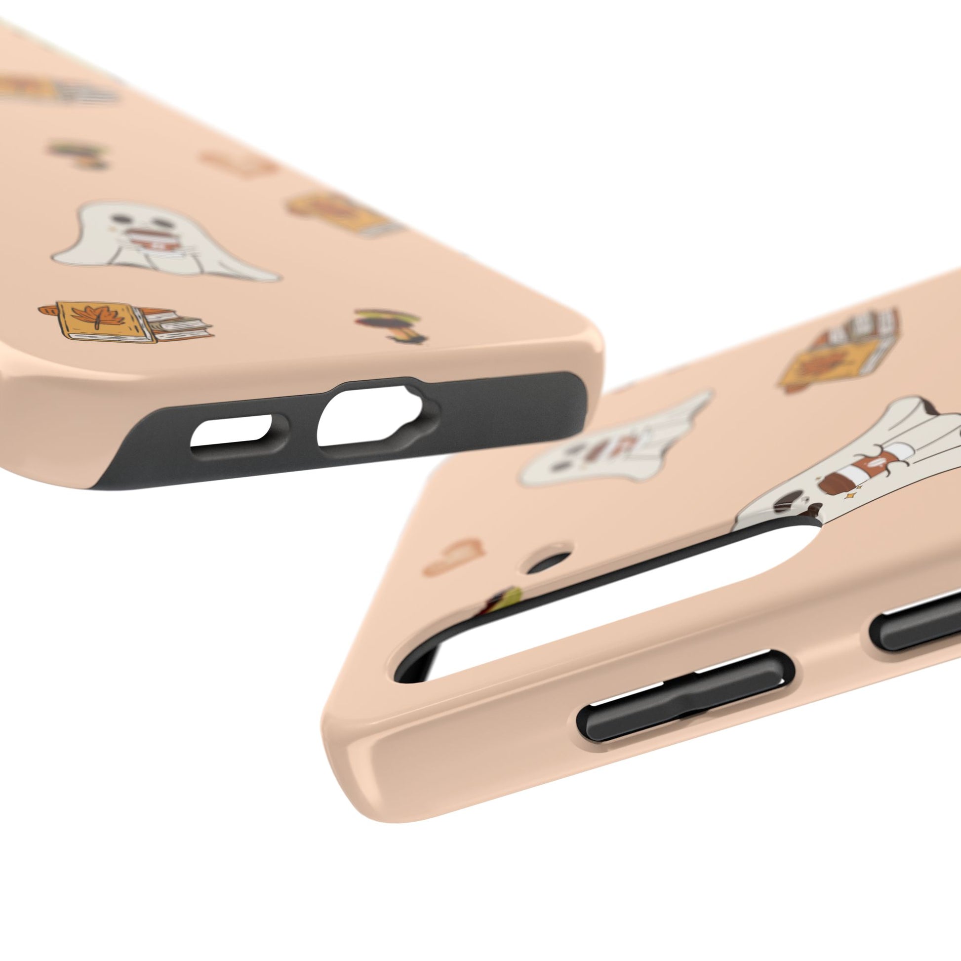 Introducing a tough phone case that combines style and durability, perfect for those who want to protect their devices without sacrificing aesthetics. This phone case features a whimsical ghost and book design, bringing a playful and cozy vibe. Ideal for students, book lovers, or anyone who enjoys a touch of charm in their daily life. Perfect for gifting during the spooky season, Halloween celebrations, or just to add some fun to your everyday routine. This phone case is not just a protection accessory; it’s a statement piece to express personality and interests.