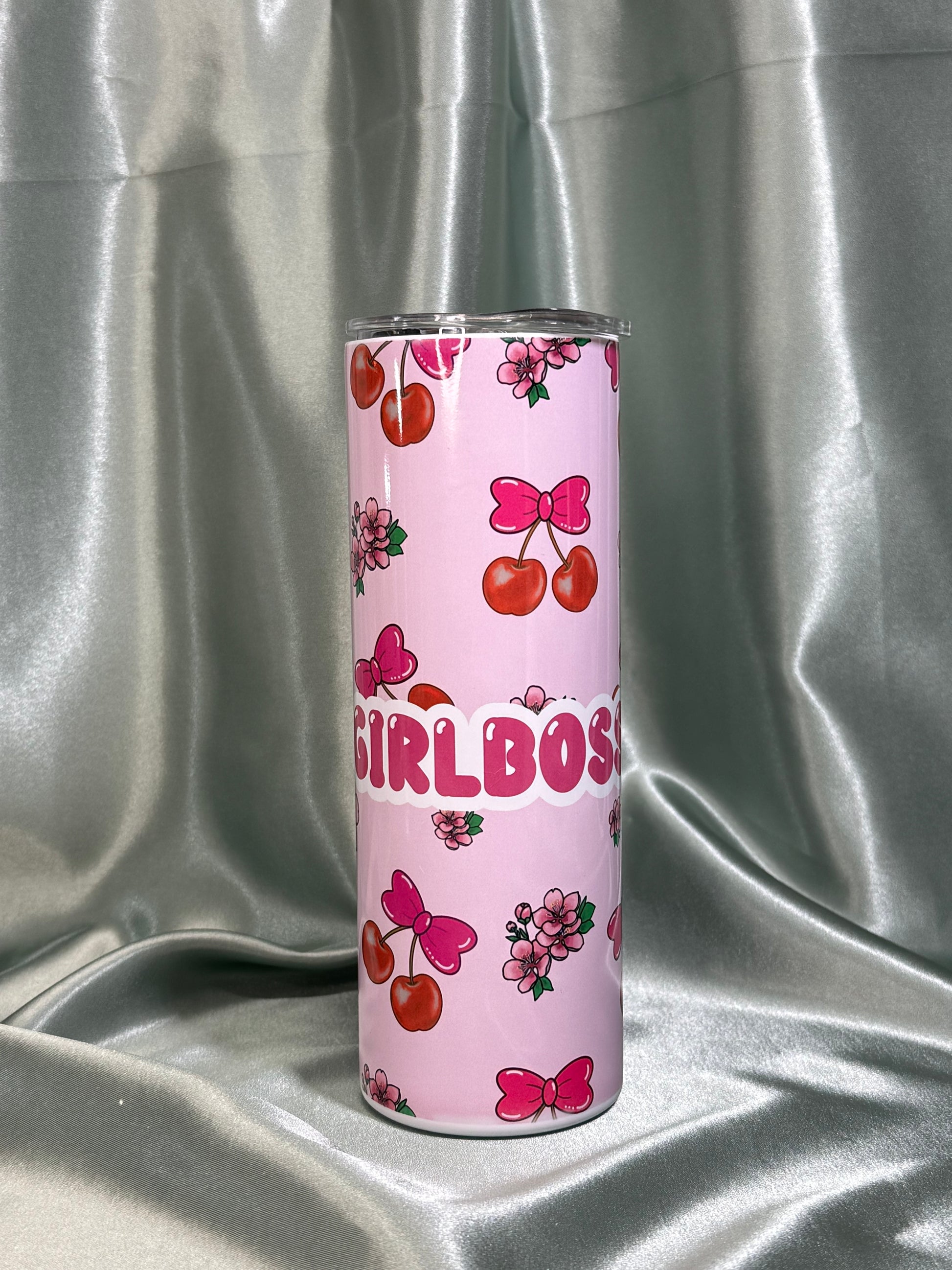 Stainless steel tumbler. Original cherry and flower design with an added #girlboss to remind you of it daily.